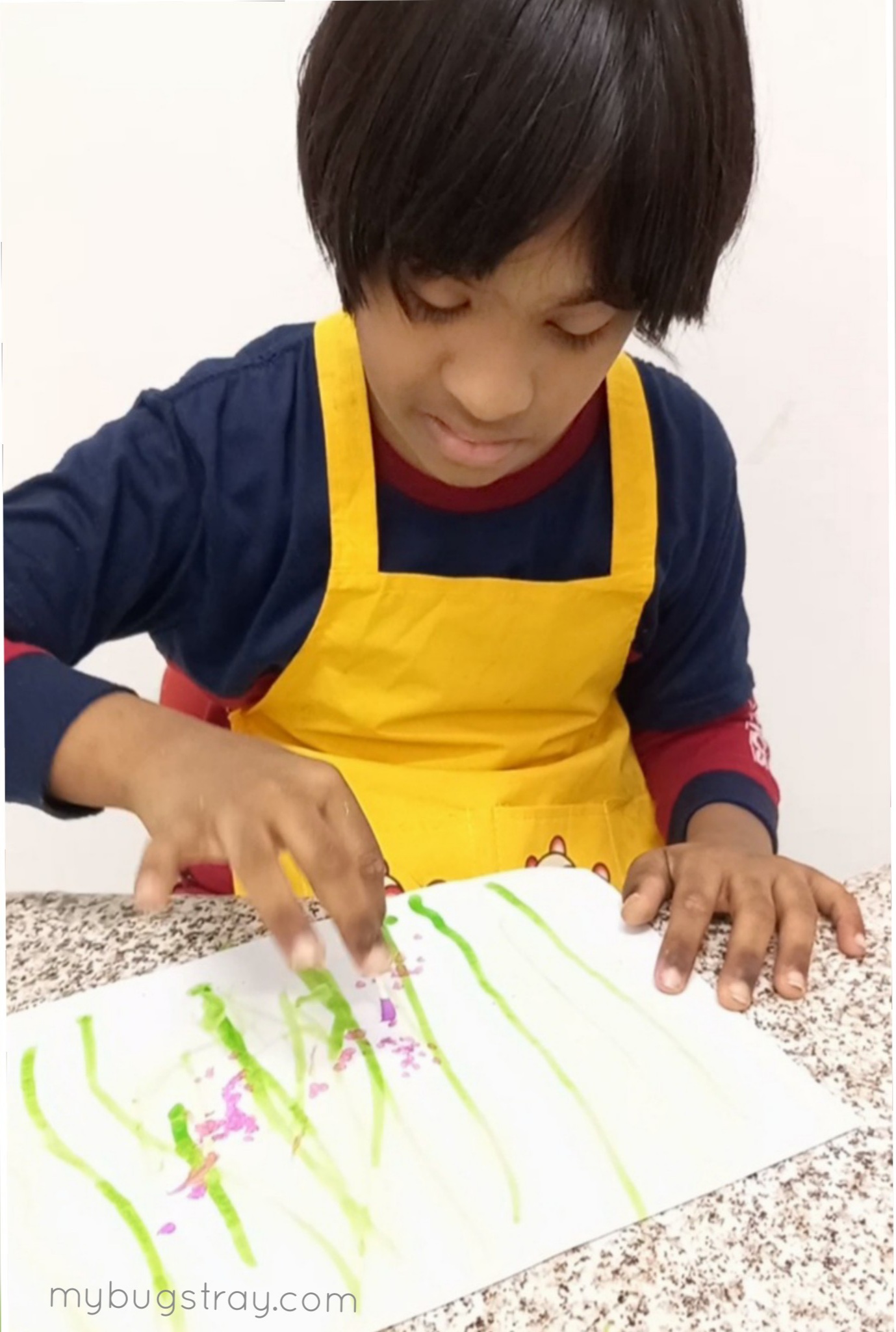 Holding cotton buds with their little fingers and using their hand movements to create and art is a great way to boost their fine motor skills and grip as well.