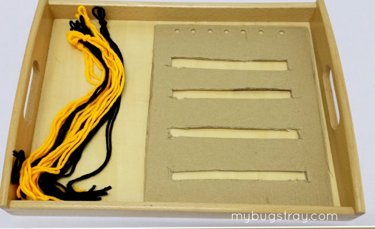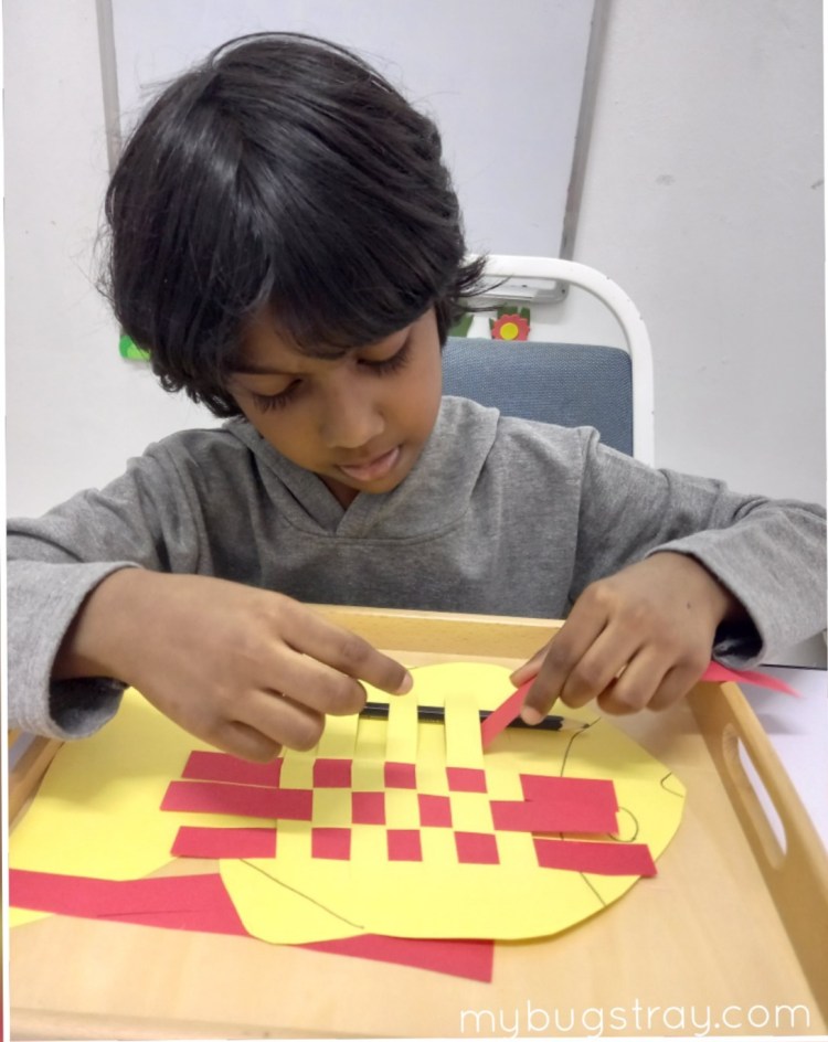 Weaving is a repetitive task that helps a child to stay focus and understand the sequence of the particular pattern. It builds the hand and eye coordination and problem solving skills.